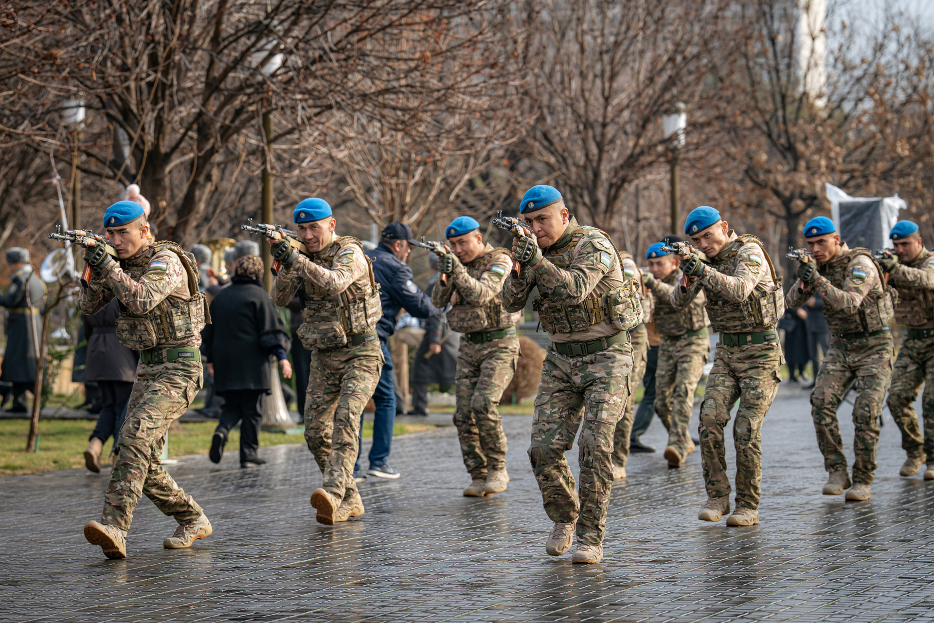 В Ташкенте прошло торжественное шествие подразделений Вооружённых сил Узбекистана. Мероприятие приурочено к 34-й годовщине образования Вооружённых сил и Дню защитников Отечества.